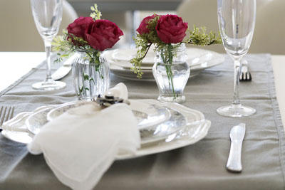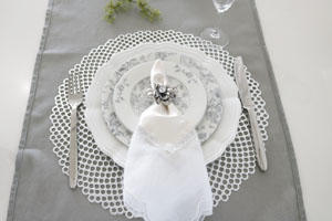 ナフキンなどの小物を同系色でまとめると、大人の雰囲気に。