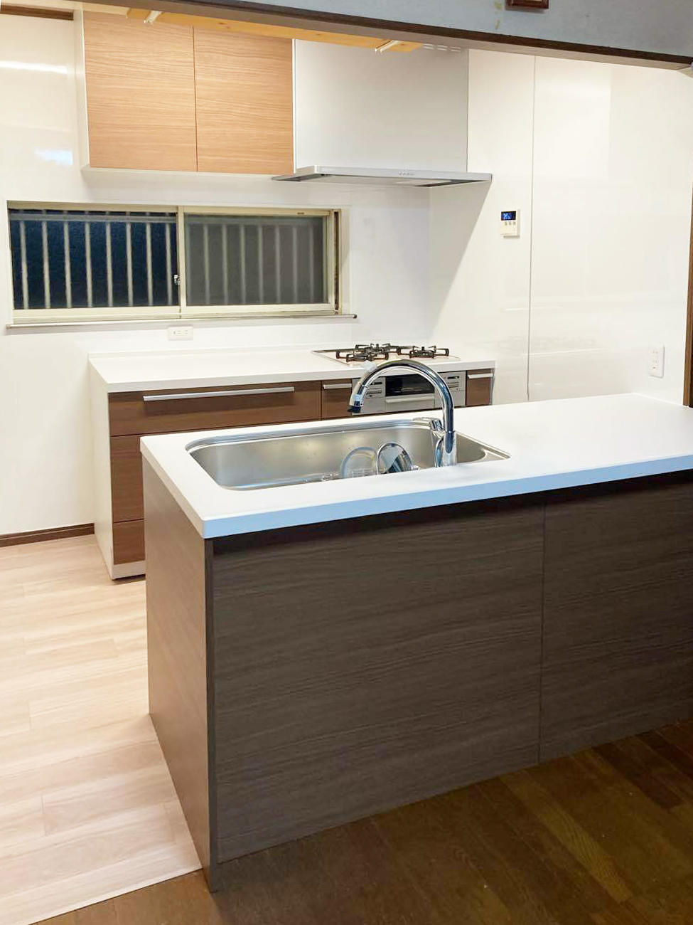 通路幅の関係で大型の対面キッチンの